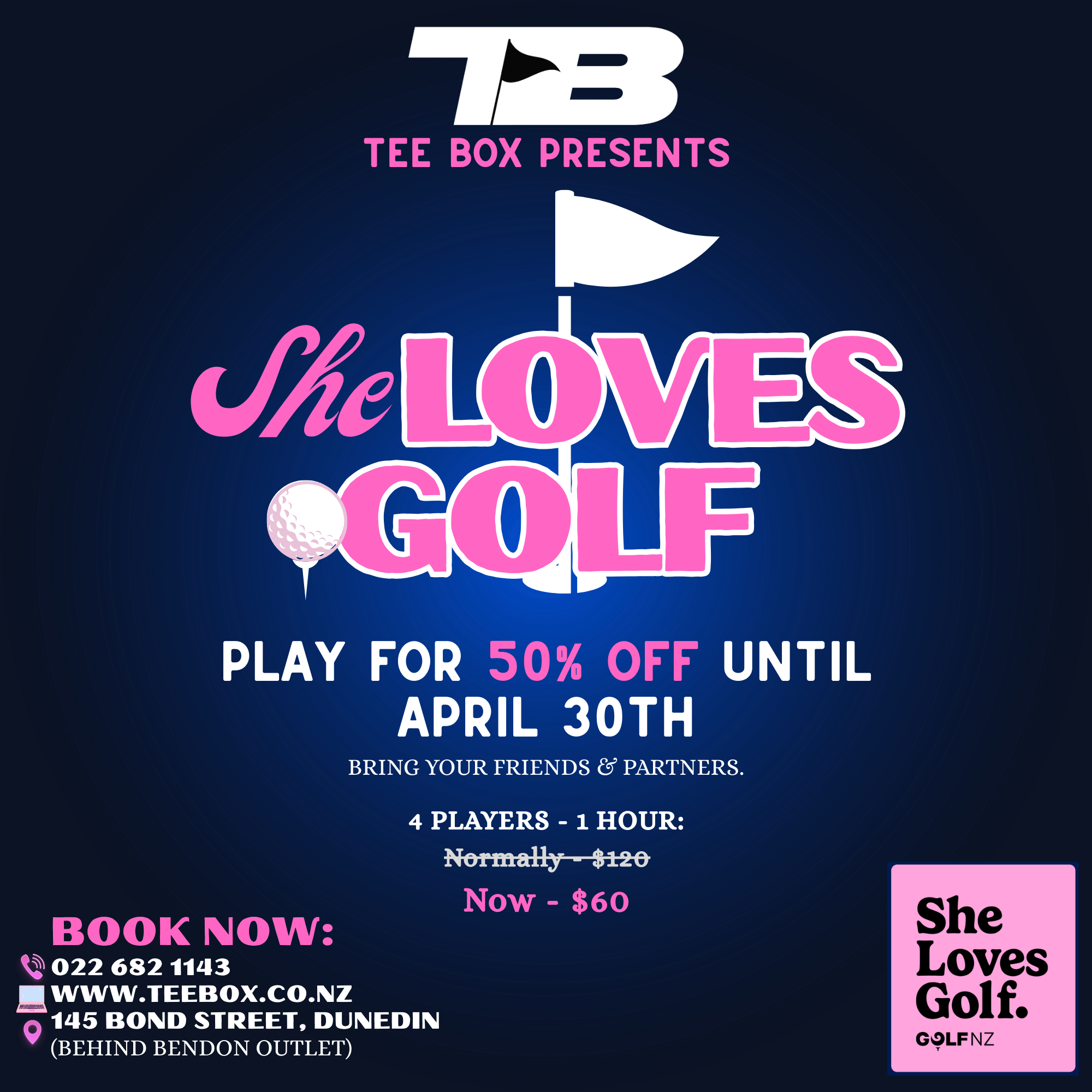 Tee Box is proud to be apart of She Loves Golf with 50% off simulator play for women and their partners until April 30th.